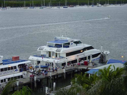 ケアンズ3日目も終日海へ。グリーン島とさらに沖合にあるアウターリーフへ。グレートバリアリーフがいかにグレートかをお手軽に見学してきた。グリーン島まではケアンズの港からジェット船に乗って1時間ほど。島に2時間ほど滞在した後、さらに沖合へ1時間ほど船に乗りアウターリーフへ到着。ここにはポントゥーンと言う、観光客が手軽にシュノーケリング、スキューバダイビングを行うための機材などがおいてある前線基地があり、このまわりの海に潜った。大陸から2時間ほどの距離にあるところにいろんな種類のたくさんの熱帯魚とサンゴ。水族館の水槽の中を泳いでいる気分だ。 夕方ホテルに戻り、明日はいよいよ帰国なので夜はケアンズの街中をぶらぶらしてまわった。