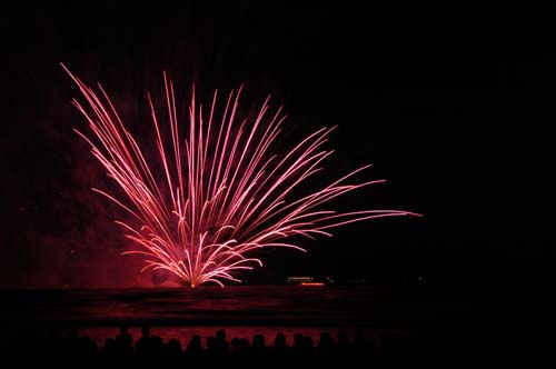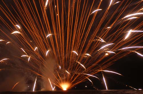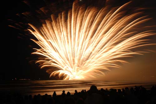 今日は夏休み4日目。昨日は朝から箱根の天山温泉につかり、その後三島で鰻を食べた極楽三昧な一日を送ったが、今日は夜から鎌倉花火大会があるので、昼間は由比ガ浜で海水浴をしてしっかりと体を動かした。平日だがお盆休みの人も多いだろうと言うことで、例年通りメーリングリストのオフ会として開催し、今年は23名が集まった。 今年の花火は昨年とは異なり煙で花火が全く見えないと言うこともなく堪能できた。特に、今年は花火開催時間に満潮となり、沖合の波も高くうねっていたので、打ち上げ台船が例年になく浜近くにいて、ちょうど頭上で花火を見ているような感じで迫力があった。火の粉が降ってくるスリリングさを味わいながら花火を見れるのが、鎌倉花火大会の良いところかもしれない。
