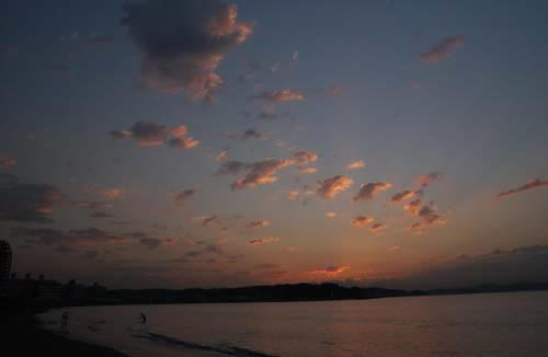 今日の湘南は晴れ。昨日の夕焼けほどは焼けなかったが、少しだけ朝焼けになった。朝の撮影は一ヶ月ぶりになるが、しばらく撮らないうちに太陽のあがる位置がだいぶ南へ移った。