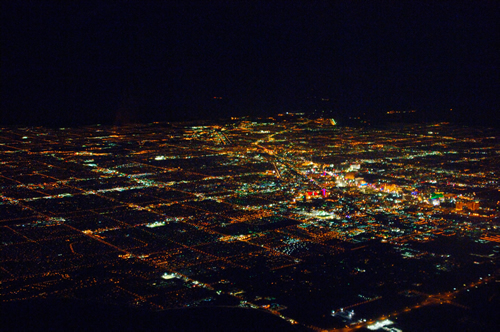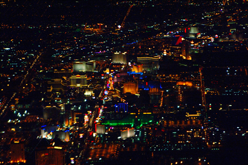 市内観光を終えて夕方にはサンフランシスコ空港からラスベガスに飛び立った。ネオンに輝くラスベガスの夜景を眼下に見下ろしながら、今回の旅行のメインの地におりたった。