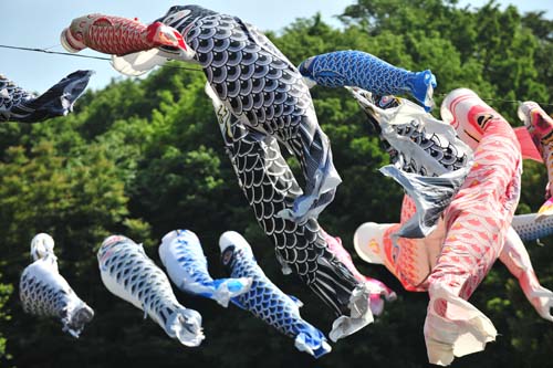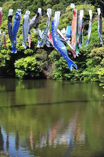 住吉城址のあとは、由比ガ浜と鎌倉中央公園の鯉のぼり。あたたかい南風は海岸線だけでなく、鎌倉山と梶原の山を越えて鎌倉中央公園の谷戸にも届いていました。
