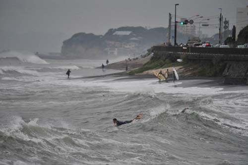 さて、水天宮をあとにして、天神下から鎌倉山経由の鎌倉駅行きバスに乗って帰宅し、夕方には稲村ガ崎へ。台風のうねりはしっかりと入っていた。おそらく今日が一番の波だっただろう。夕方には太陽も顔を出し、久しぶりに真っ赤な夕焼けになった。