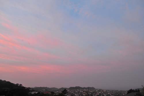 昨日の夕焼けに続いて、今朝は東の空が朝焼け。夜はカレッタ汐留46階にて会食。