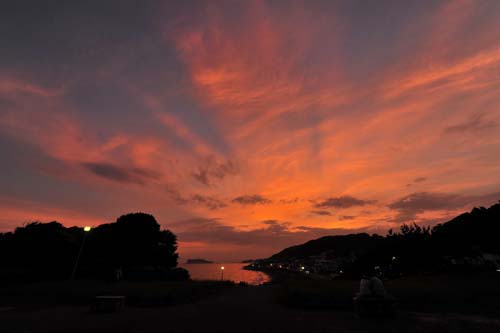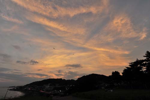 夏休み第一弾の4日目です。今日は朝からヘビーな散策はせずに自宅でのんびり過ごして、午後からちょっとだけ近所をまわってきました。一旦帰宅してから日没前に稲村ガ崎へ。 今日もまた夕焼け空になりました。土曜日から4日連続の夕焼けです。年に数回しか見れないような真っ赤な夕焼けが今月は何度も見れています。