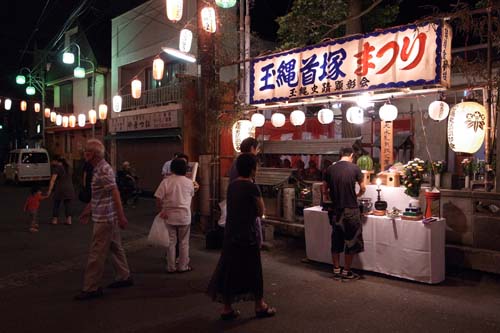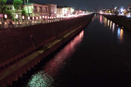 大船駅の西口を流れる柏尾川。まだ暑さが残る夏の夕暮れ時、柏尾川の川面をたくさんのぼんぼりが照らす玉縄首塚まつりの光景は鎌倉の夏の風物詩でもある。玉縄首塚まつりは、今から500年ほど前の戦国時代に戦死した兵士たちを毎年8月19日に供養を行うお祭りで、現代の今ではぼんぼりとともに屋台などの夜店もでるので、普段は静かな川沿いの道路はご近所の家族連れや子供たちも集まってちょっとした賑わいとなる。前回見たのが2002年なのでもう7年ぶりになるが、ローカルの小さな夜祭りに夏の鎌倉を感じてきました。