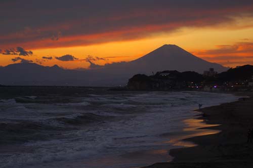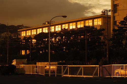 日没前に雲の隙間から一瞬だけ真っ赤な太陽が顔を出した。それまで灰色だった景色が一瞬でオレンジ色に染まった。(いーかま日記 2007年4月28日より)